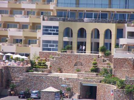 Blick zum Hotel von dem kleine Berg gegenüber