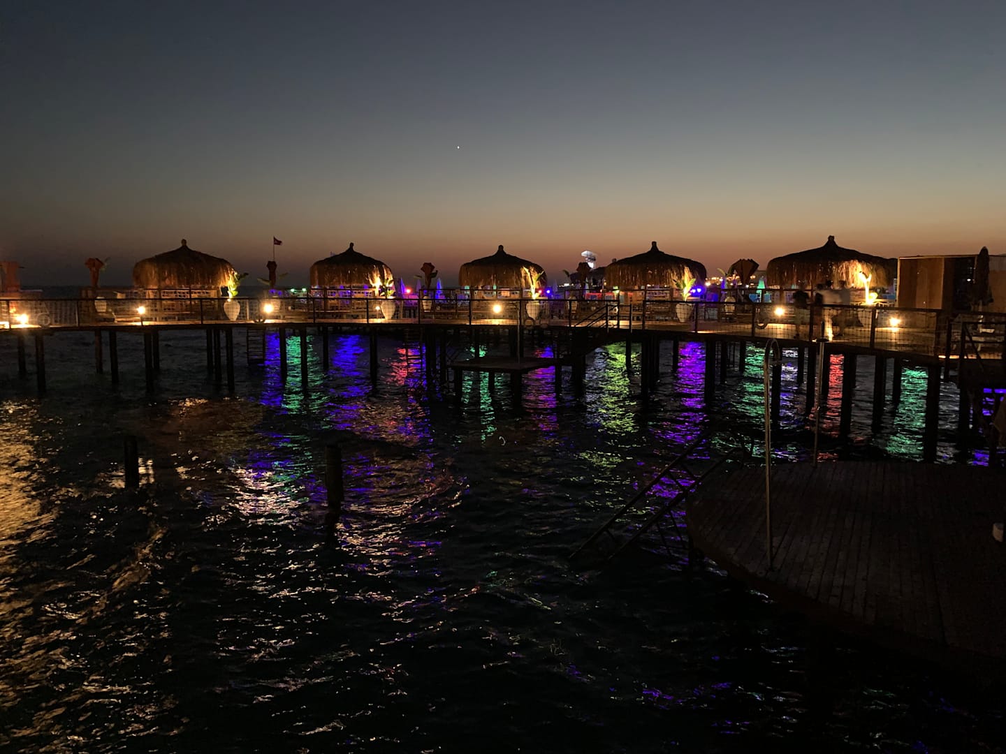 Der Steg Abends mit Beleuchtung.