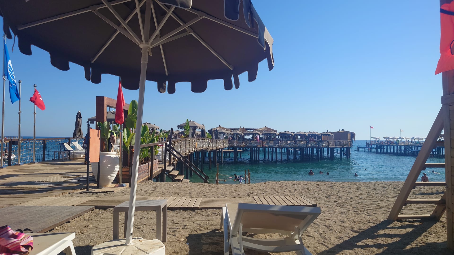 Linke Seite Steg, rechte Seite Strand