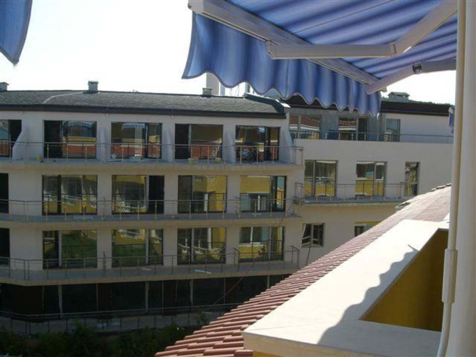 Blick vom Zimmer auf die noch nicht fertiggestellte Appartmentanlage