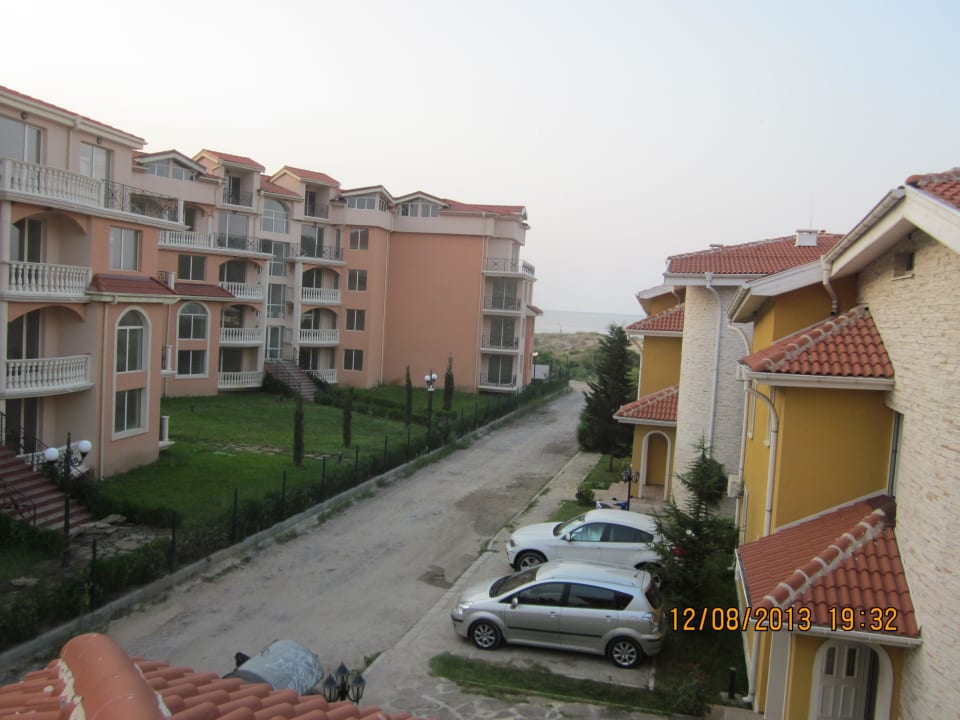 Blick in Richtung Strand. Links die Appartement Anlage.