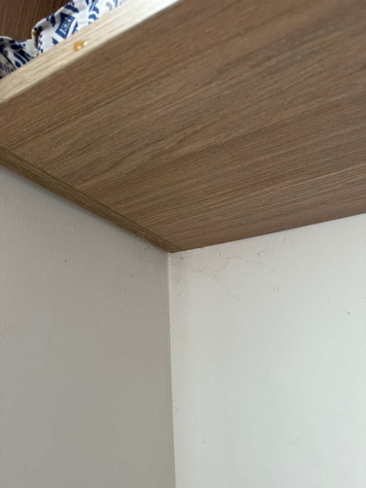 ZimmerBeim Versuch die Ameisen zu entfernen entdeckte ich dann unter dem Hängeschrank eine Menge Spinnenweben. Dort wurde lange nicht sauber gemacht.