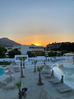Ausblick aus unserem Zimmer im Nebengebäude, dort ist der 2. Pool zu sehen.