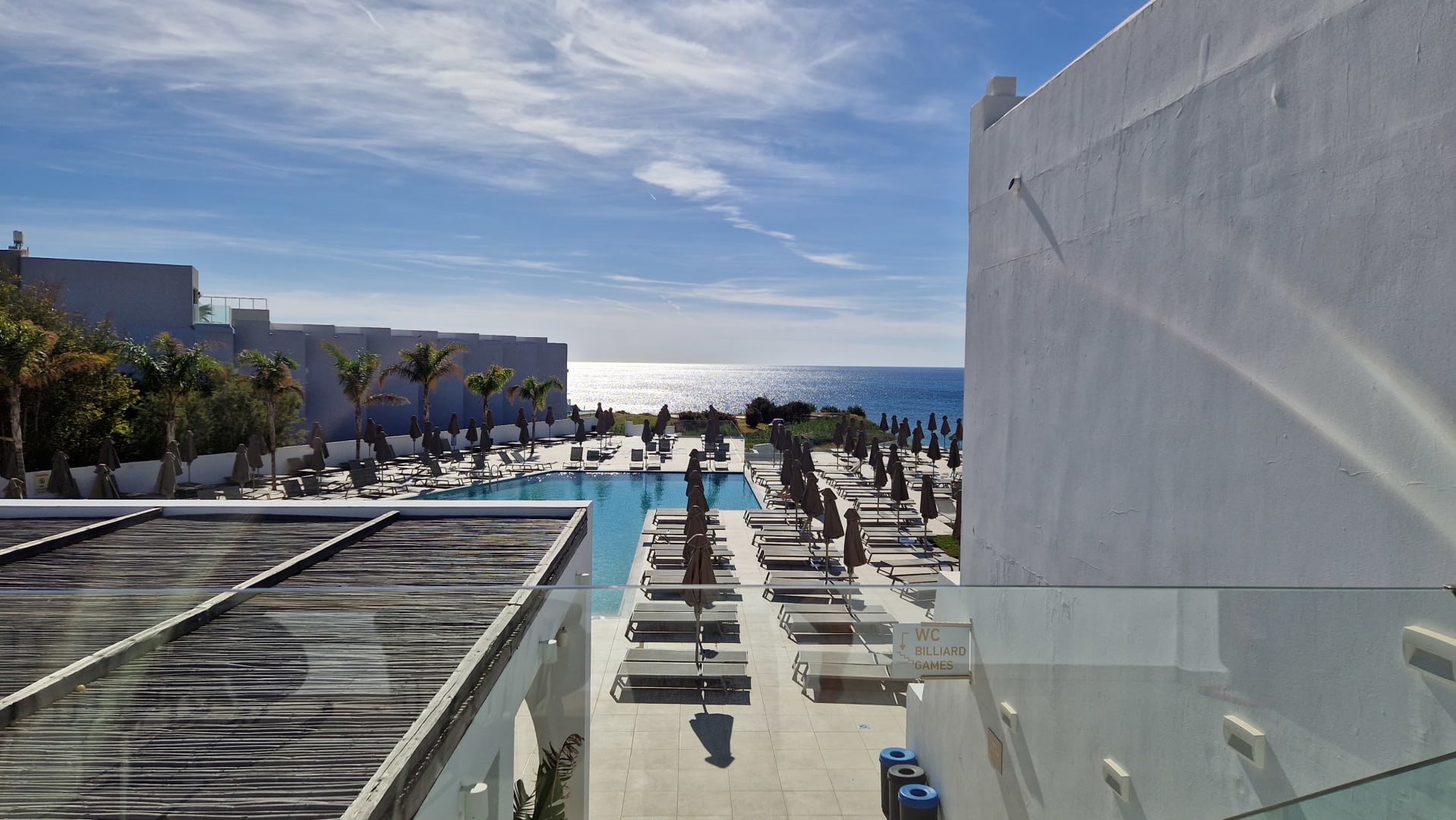 Ausblick von der oberen Terasse auf die Anlage bis zum Meer
