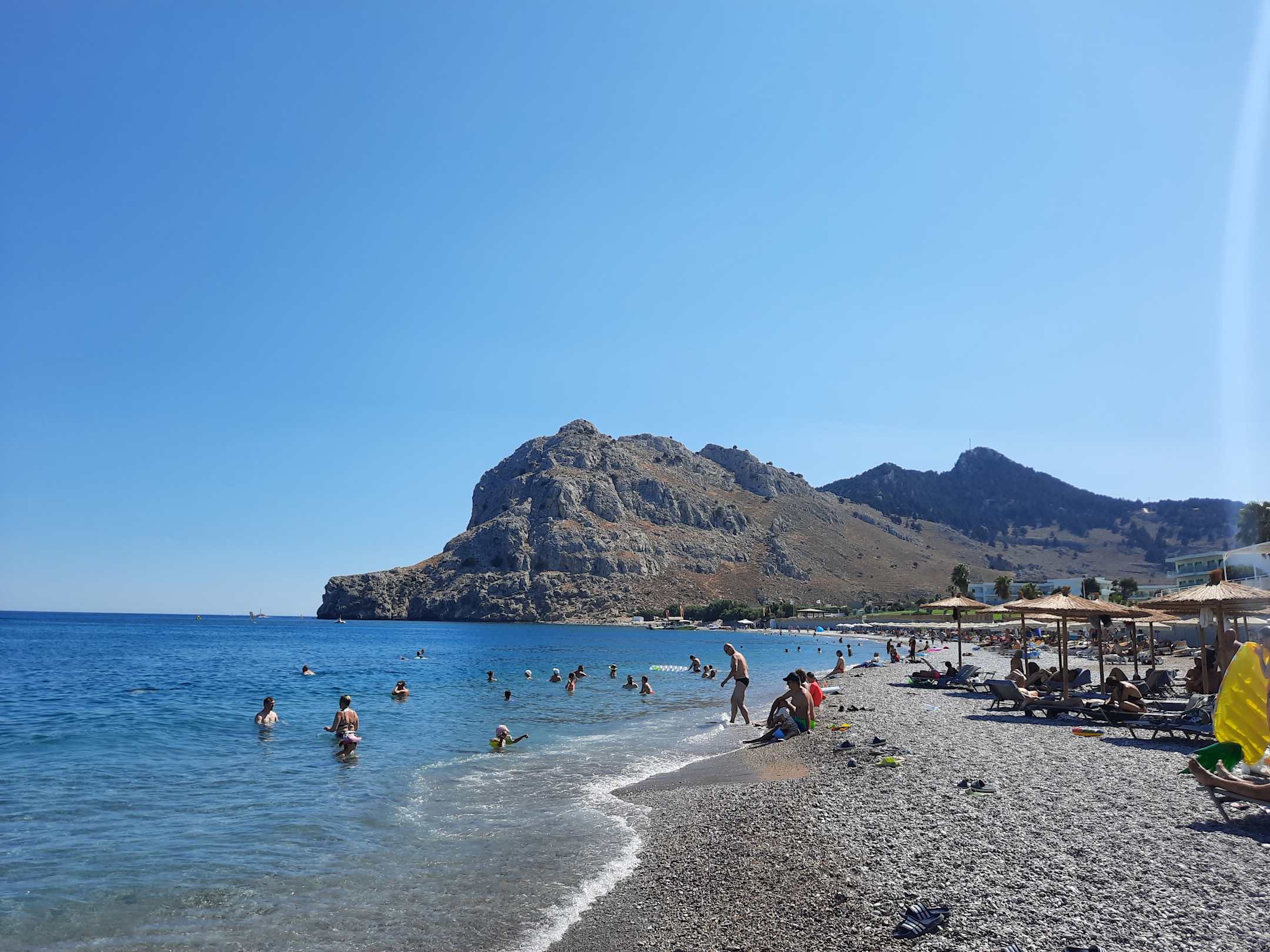 Kiesstrand mit glasklarem Wasser