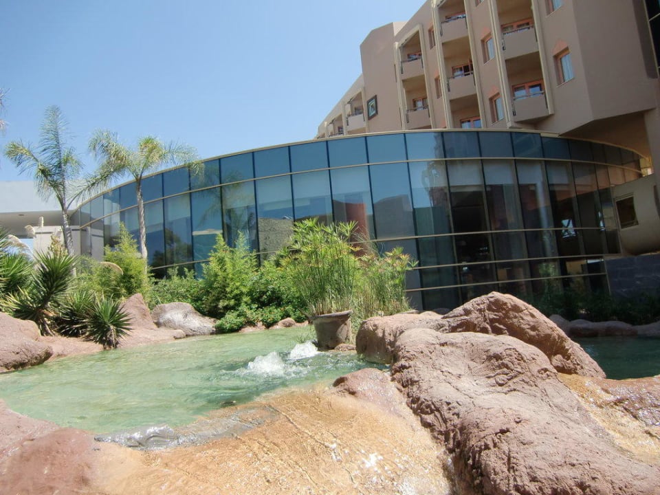 Wunderschöne Aussenansicht der Rezeption mit Wasserfällen