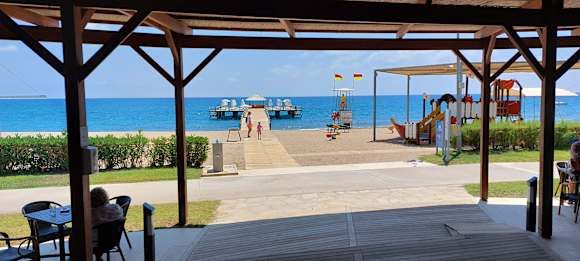 Beachbar mit Blick auf die Seebrücke, lecker Softeis