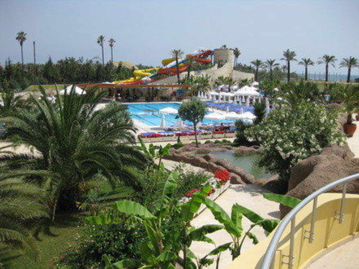 Blick auf Poolanlage Haupthaus