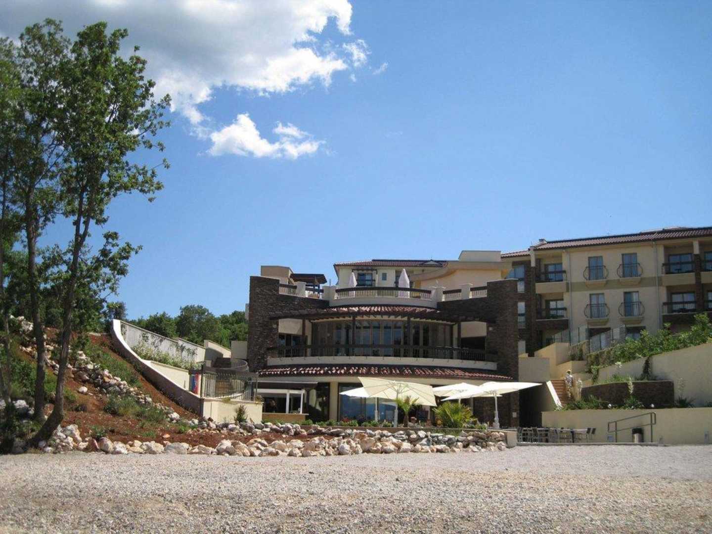 Hotelanlage, linker Teil, vom Strand aus