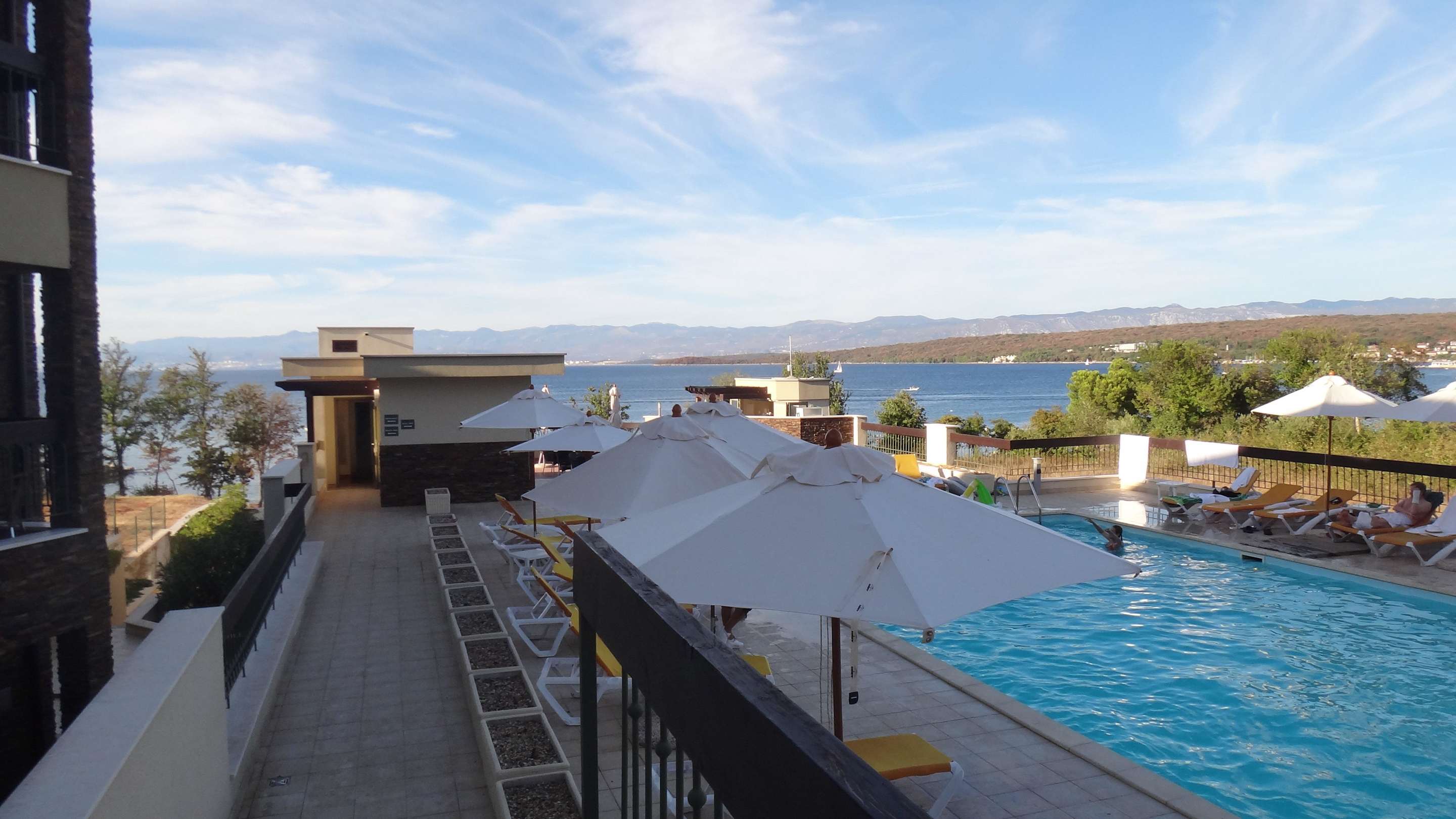 Pool mit Blick Richtung Malinska/Poolbar/Restaurant