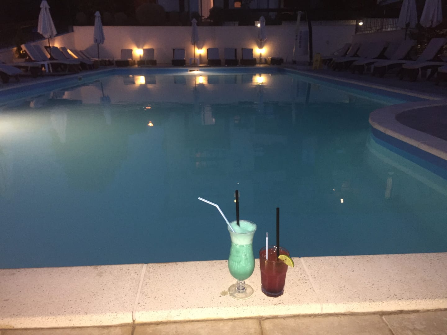 Pool bei Nacht, mit köstlichen Cocktails von der Poolbar