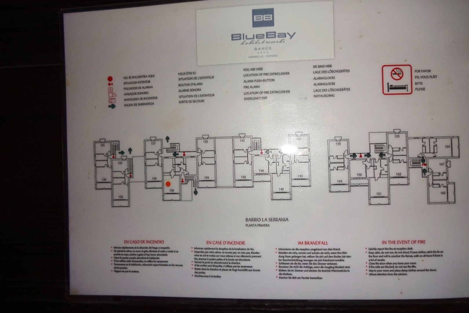 Zimmer 138 (mit rotem Punkt) unten: zum Pool Oben: Autobahn