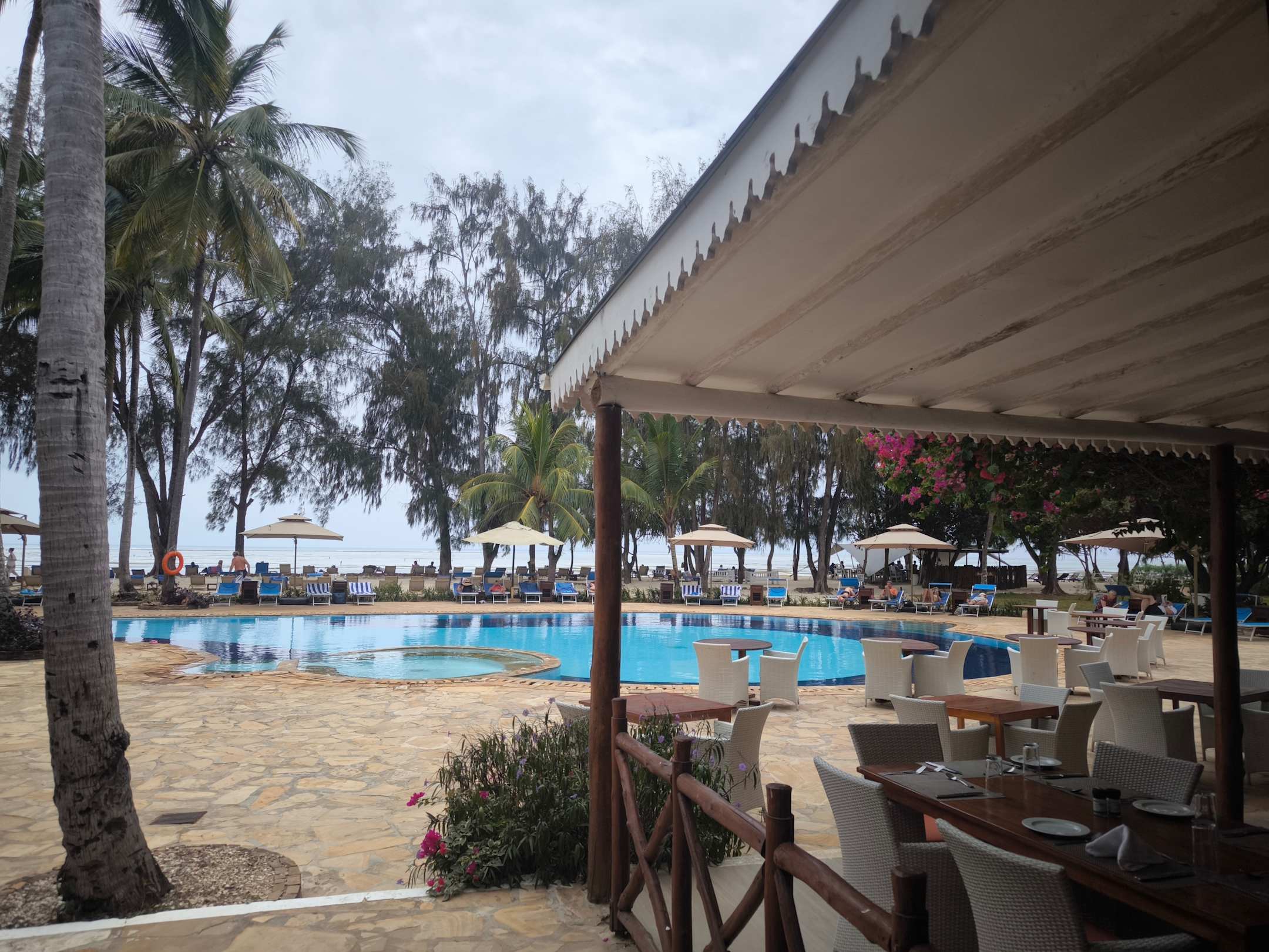 Blick vom Restaurant auf den Pool