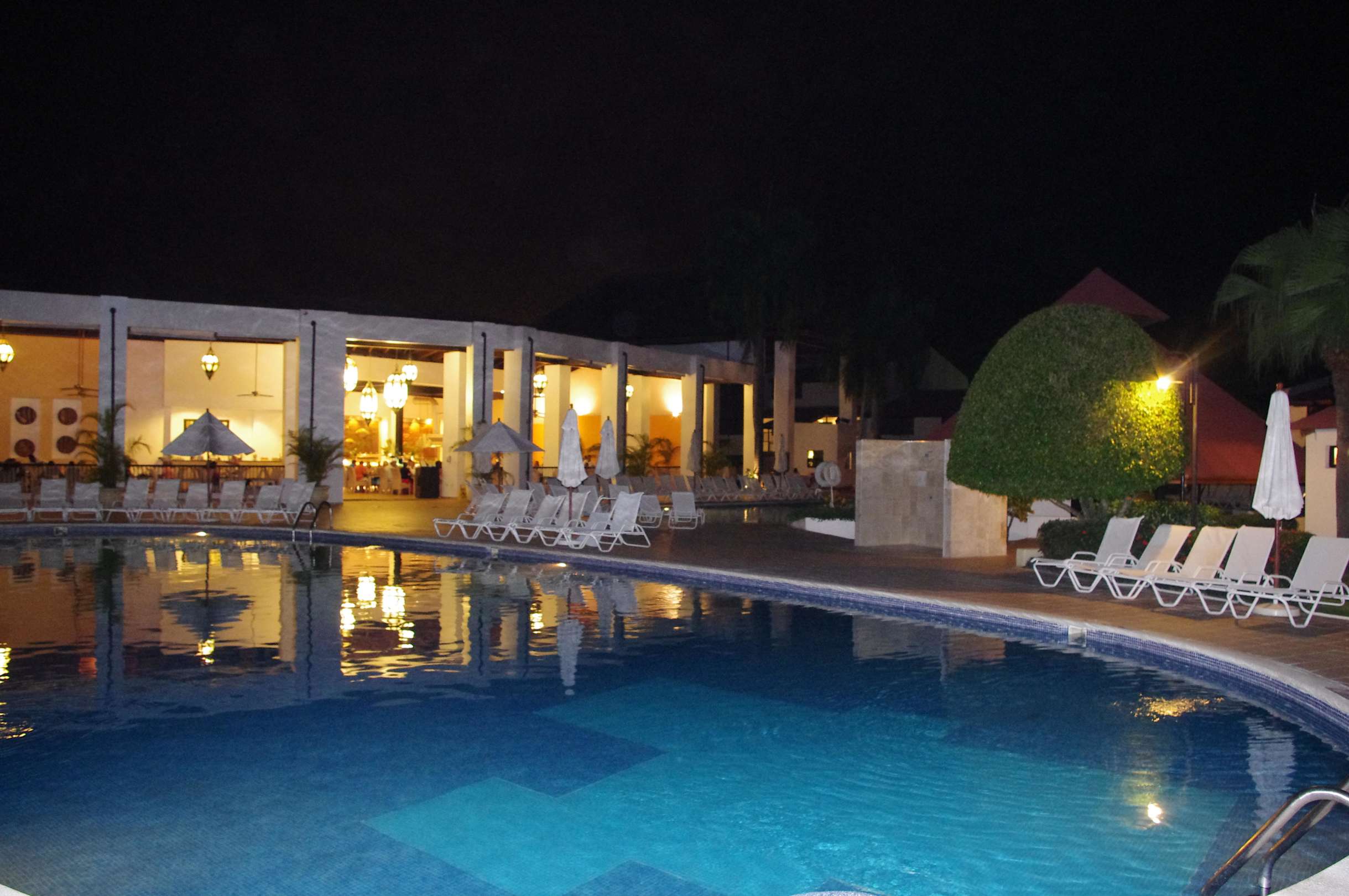 Pool und Blick zum Restaurant