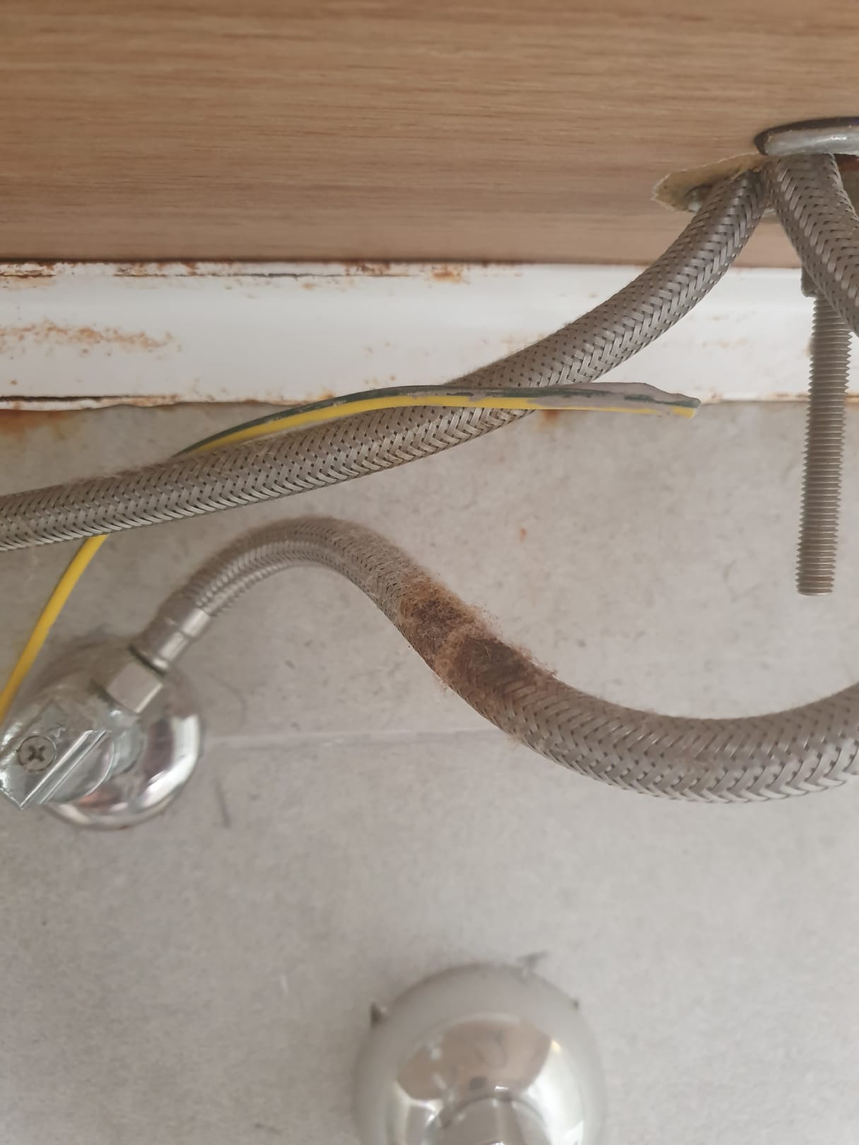 Badezimmer offene Leitungen und Kabel