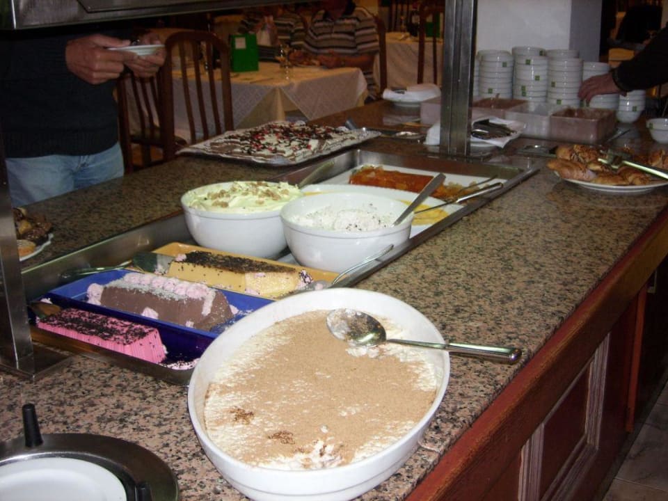 AbendessenSüßspeisen zum Nachtisch, pudding, Miöchreis, kleine Kuchen und Eis.