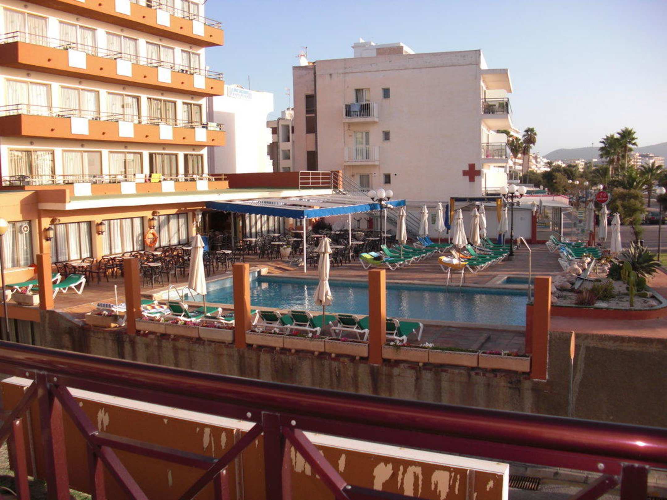 PoolBlick vom Balkon des Zimmers 104 auf den gegenüberliegenden, zum Strand orientierten Pool.