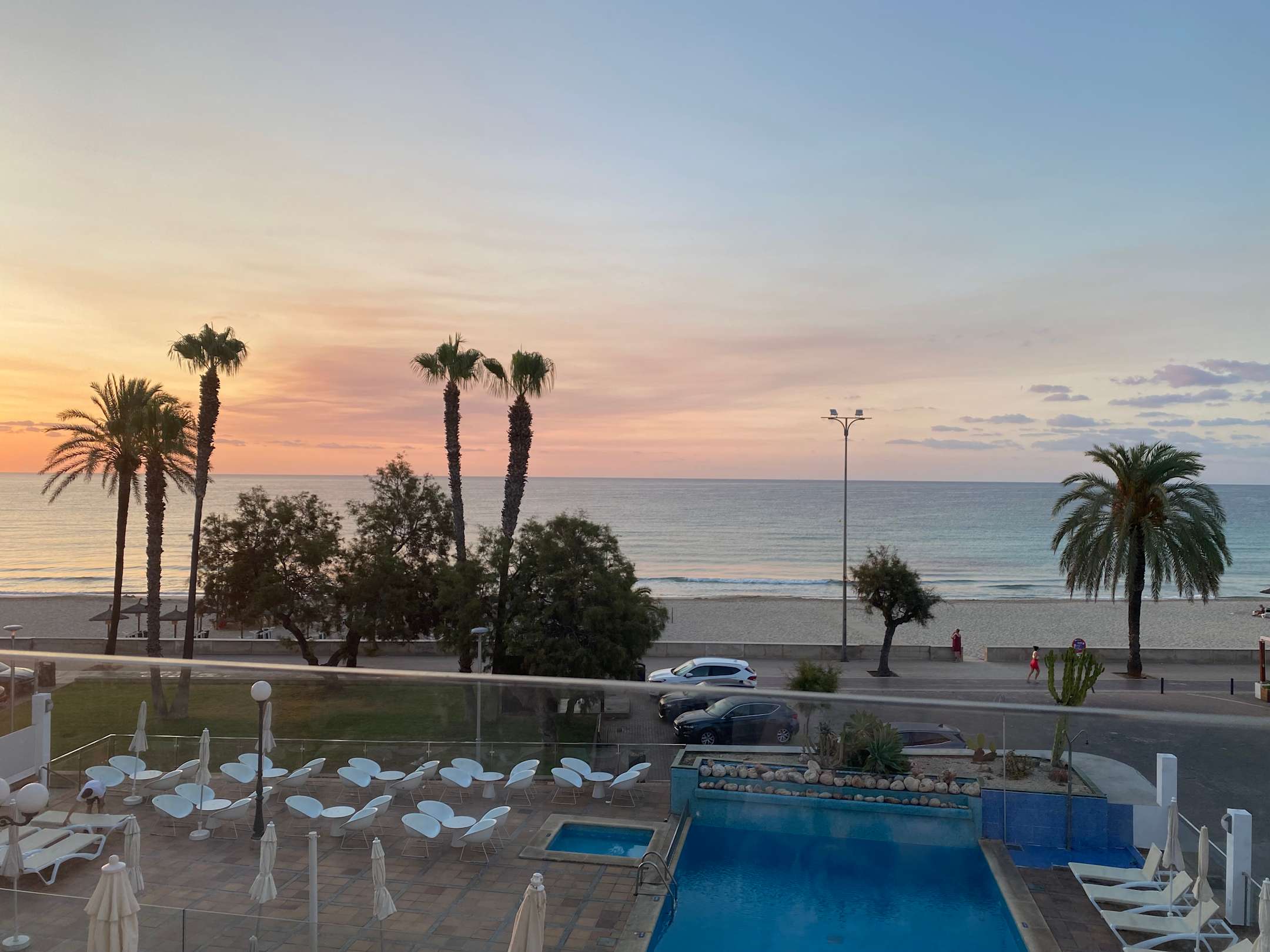 Sonnenaufgang hinterer Teil des Hotels Strandpromenade 10 m entfernt