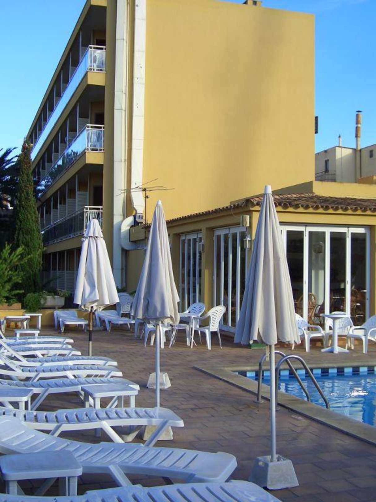 Pool mit HotelgebäudeBlickrichtung von hinten