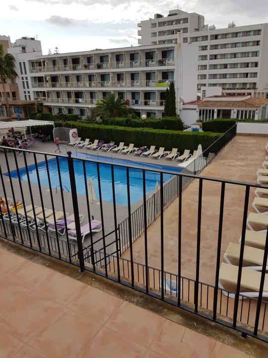 Blick vom Zimmer auf den Pool