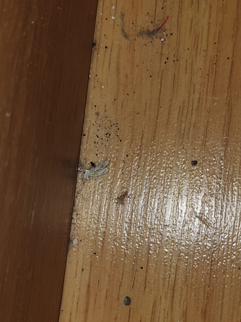 So sah der Boden im ganzen Apartment aus. dies ein Bild neben dem Bett
