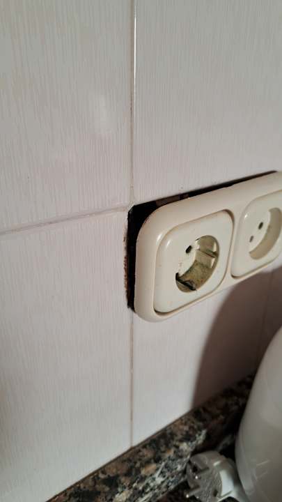 Hier schlechte Bildqualität. Das Handtuch ist tatsächlich weiß und sauber. Das Loch stört uns.