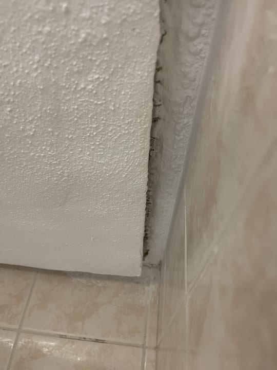 Die Decke im Bad weist stellenweise schwarze Verfärbungen sowie Putzablösungen auf.