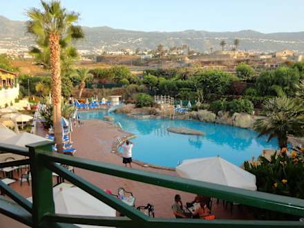 La piscina Es la piscina del hotel, tiene cascada, jacuzzi y un tobogán, como podéis ver no le falta un detalle.