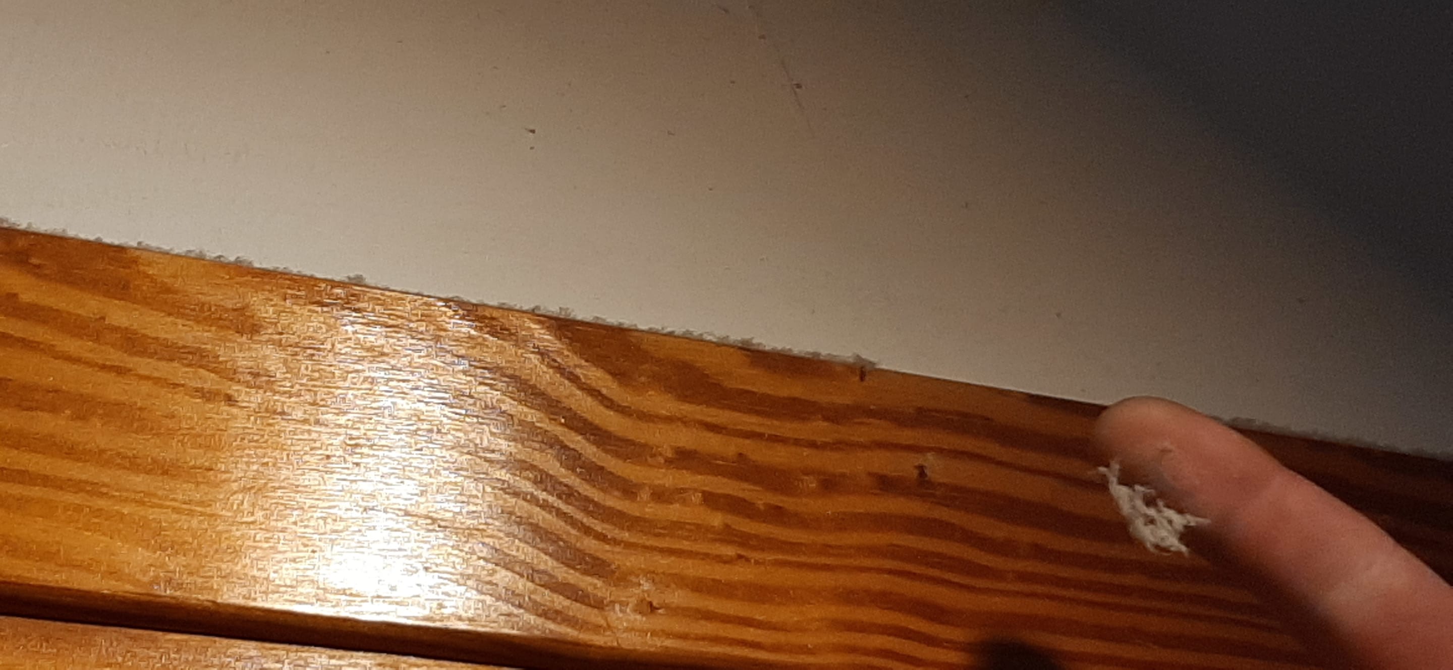 Fingerdick Staub über dem Bett