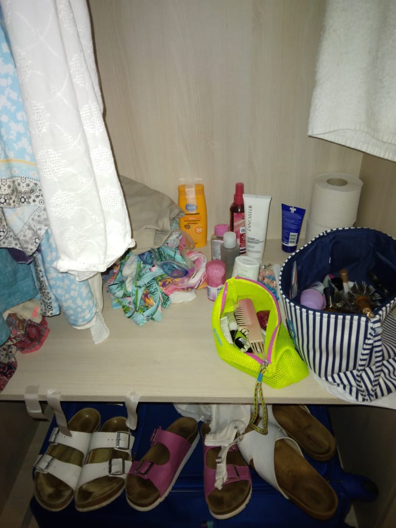 Ablage im Kleiderschrank. Im Bad keine Möglichkeit!