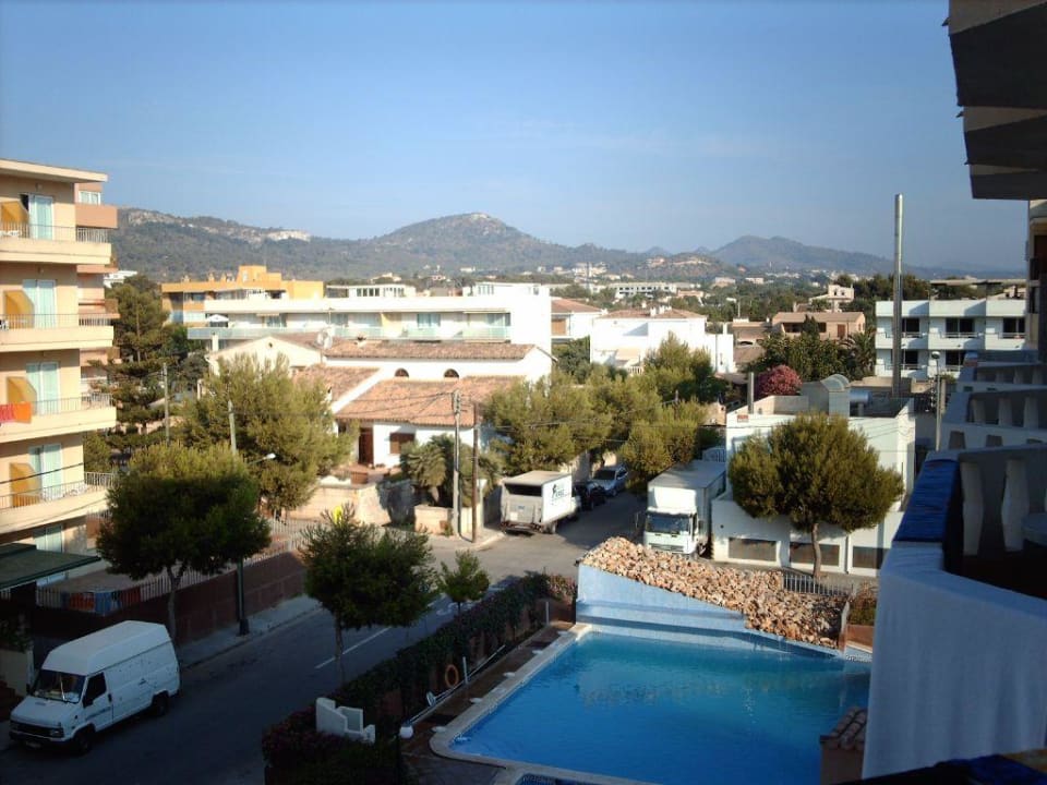 Sicht vom Hotelzimmer richtung PoolUnten sieht man den Pool und links ein Stück vom Don Jaime 2 wo noch weitere Zimmer sind.