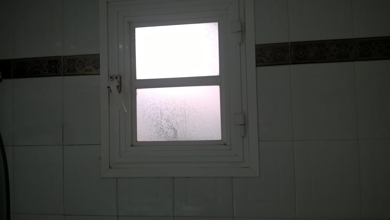 AusblickBadfenster, wenn man es jahrelang nicht putzt. Die Putzfrauen konnten ohnehin Nichts als laut rumschanttern