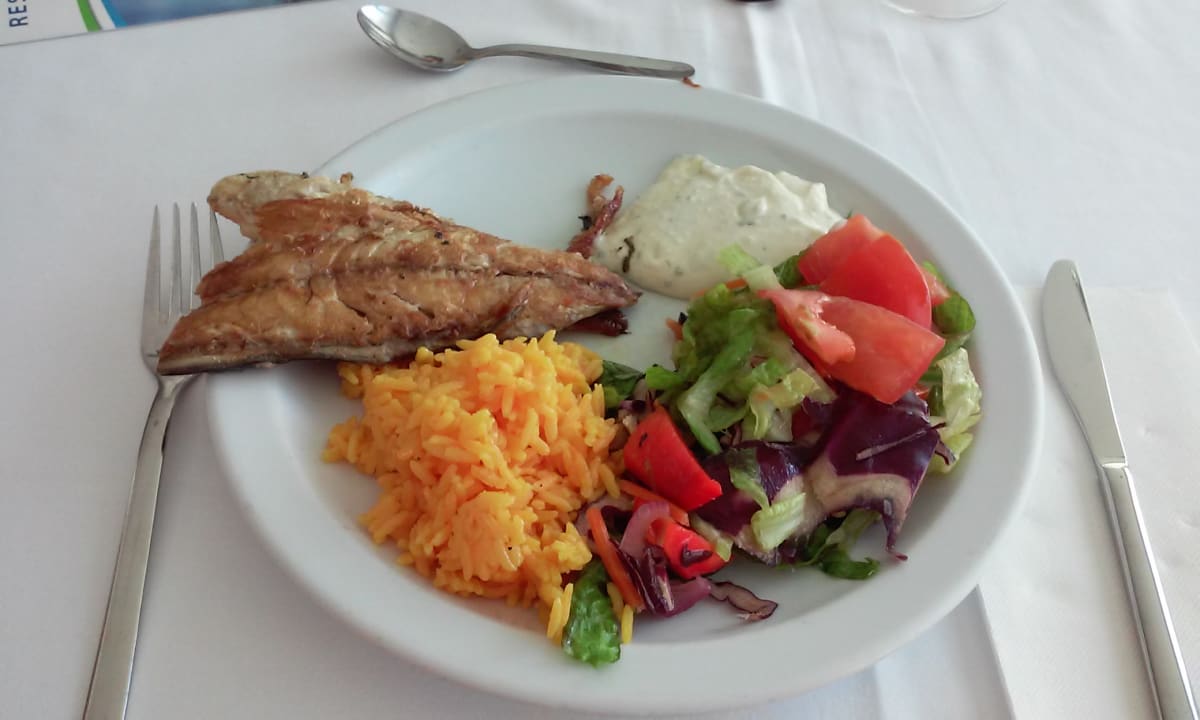 Mittags und Abends Fisch mit Salat