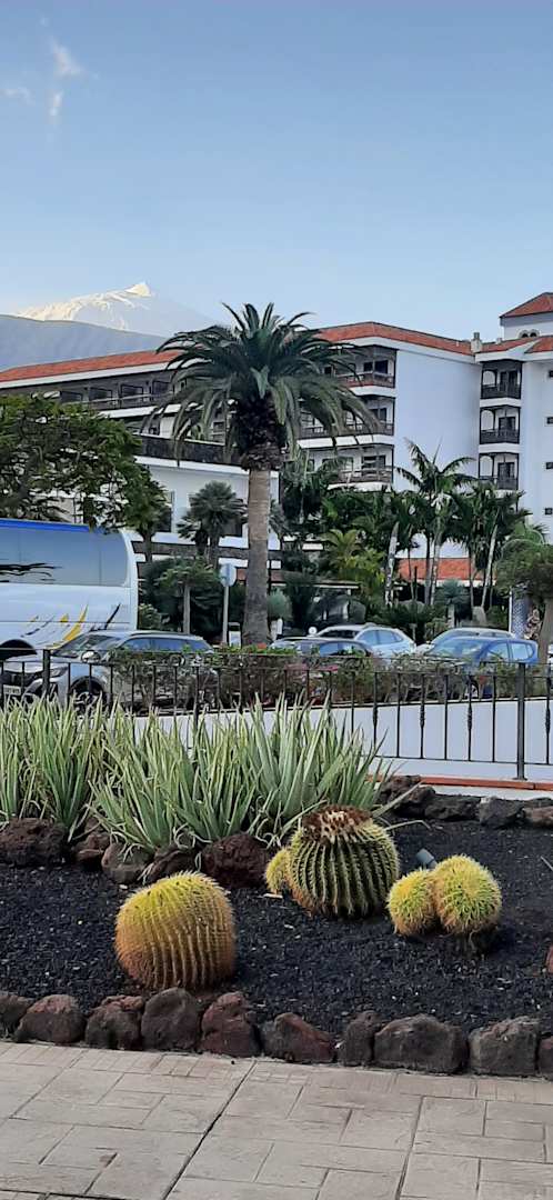 Blick vom Hotel auf den verschneiten Teide