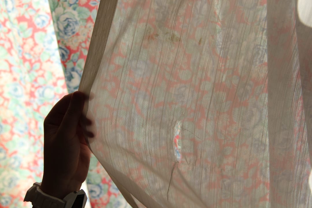 Löchrige und herunter hängende Gardinen