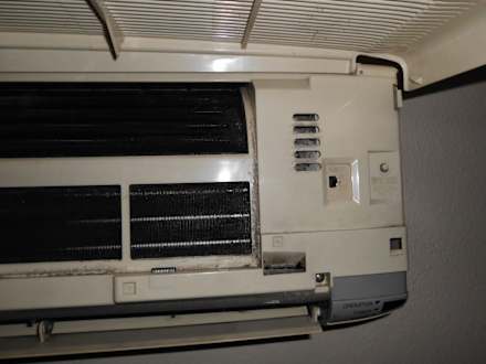 KlimaanlageThermofühler völlig verdreckt, alles voll Staub, die 5 kleine Schlitze oben rechts