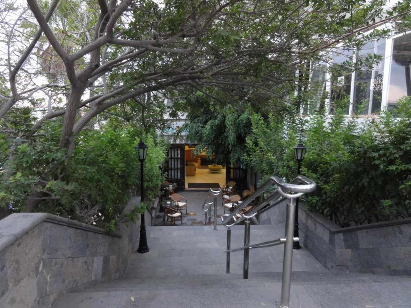 Hoteleingang nur mit Treppen und im Souterrain.