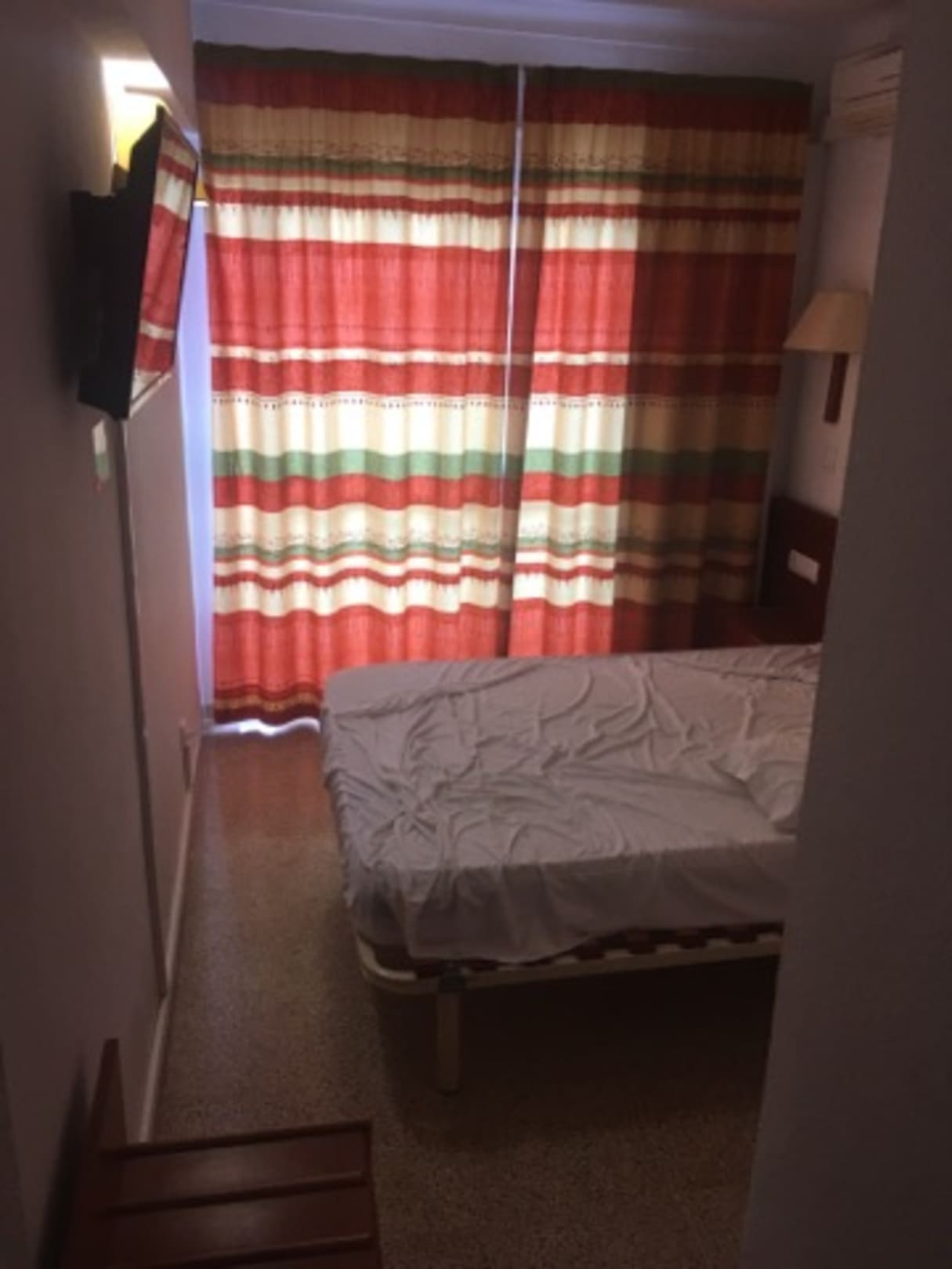 Blick aus dem Zimmer-Flur in das eigentlich Zimmer (sehr überschaubar)