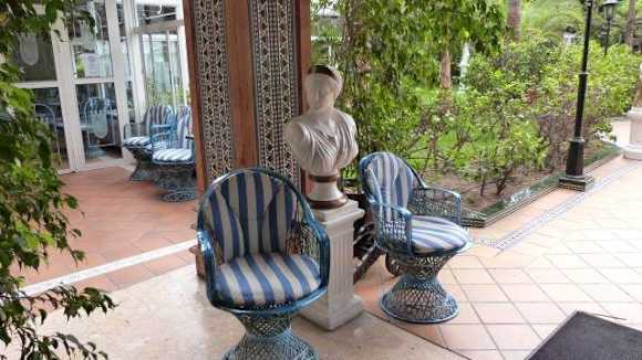 Vor dem Eingang zum Hotel