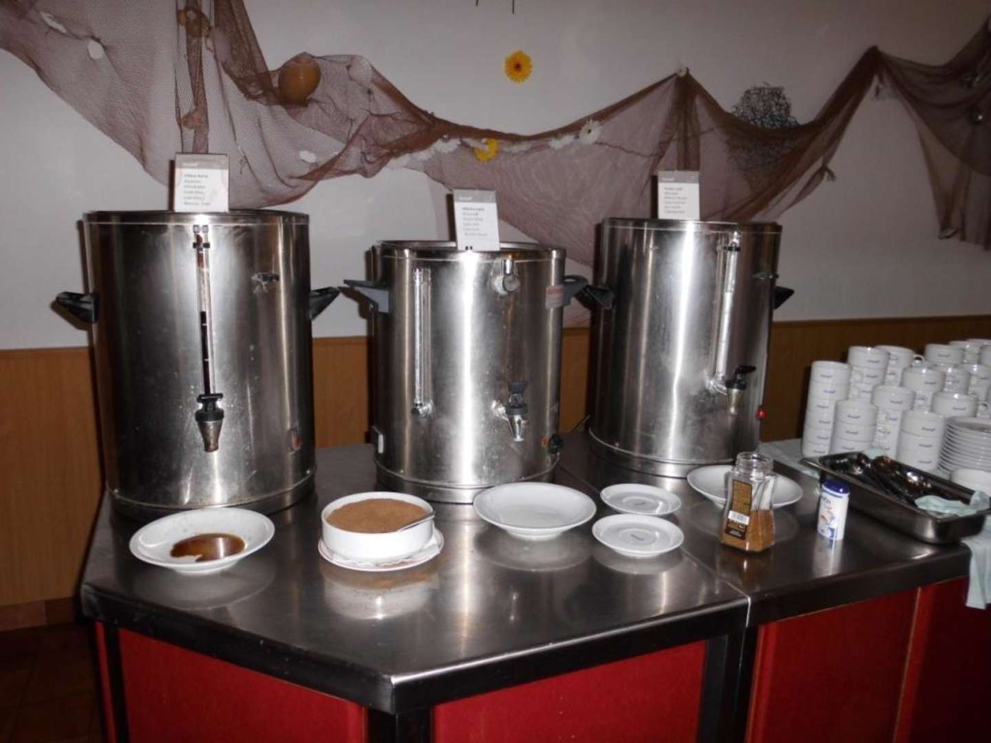 Filterkaffee, Milch, heißes Wasser, Kakao etc.