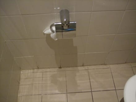 ToiletteHier sehen Sie den Toilettenbereich, mit Schimmel in den Fugen.