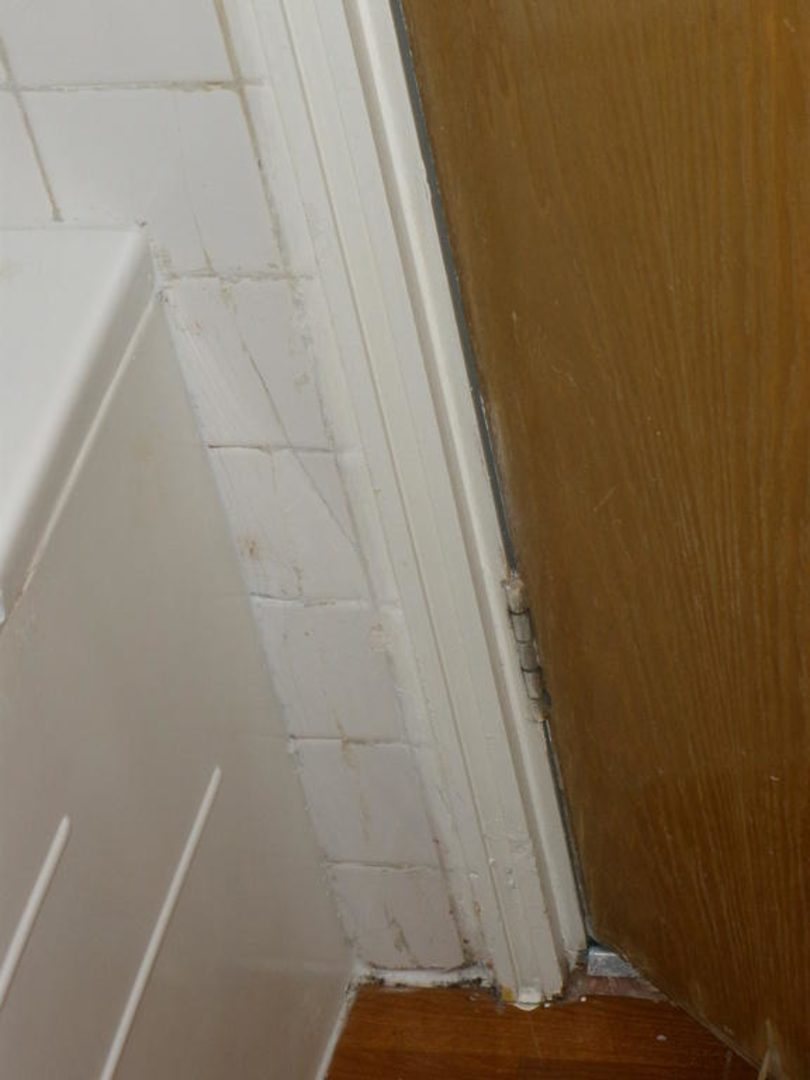 schlampig gefugte Ecken, Silikon verschmiert, einfach nur häßlich