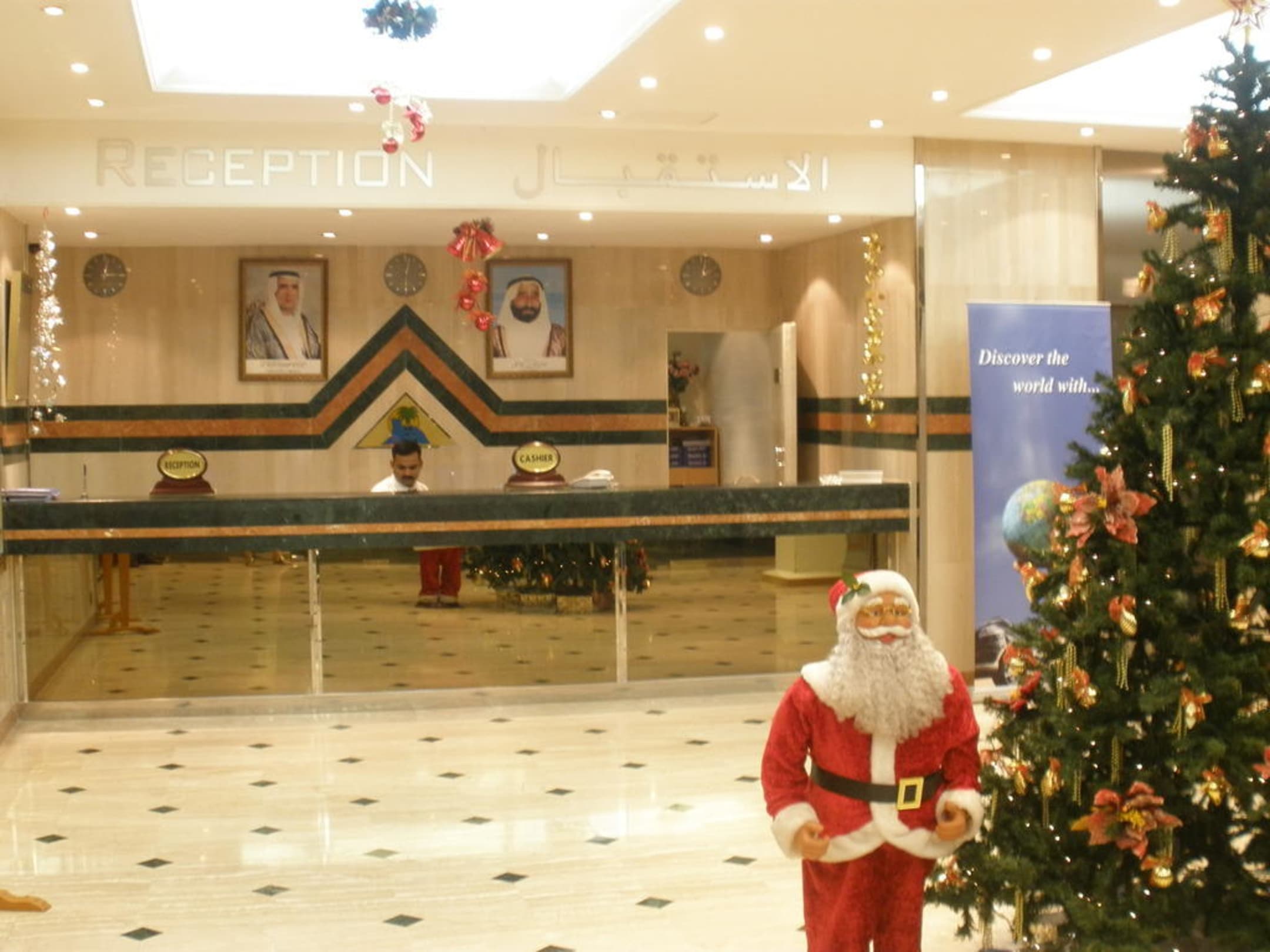Blick auf Rezeption, glänzend und schillernd, (Anreise 24.12.2009)