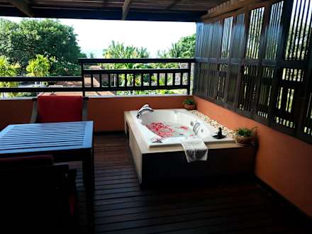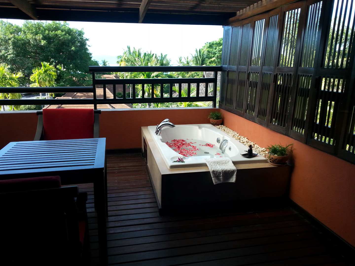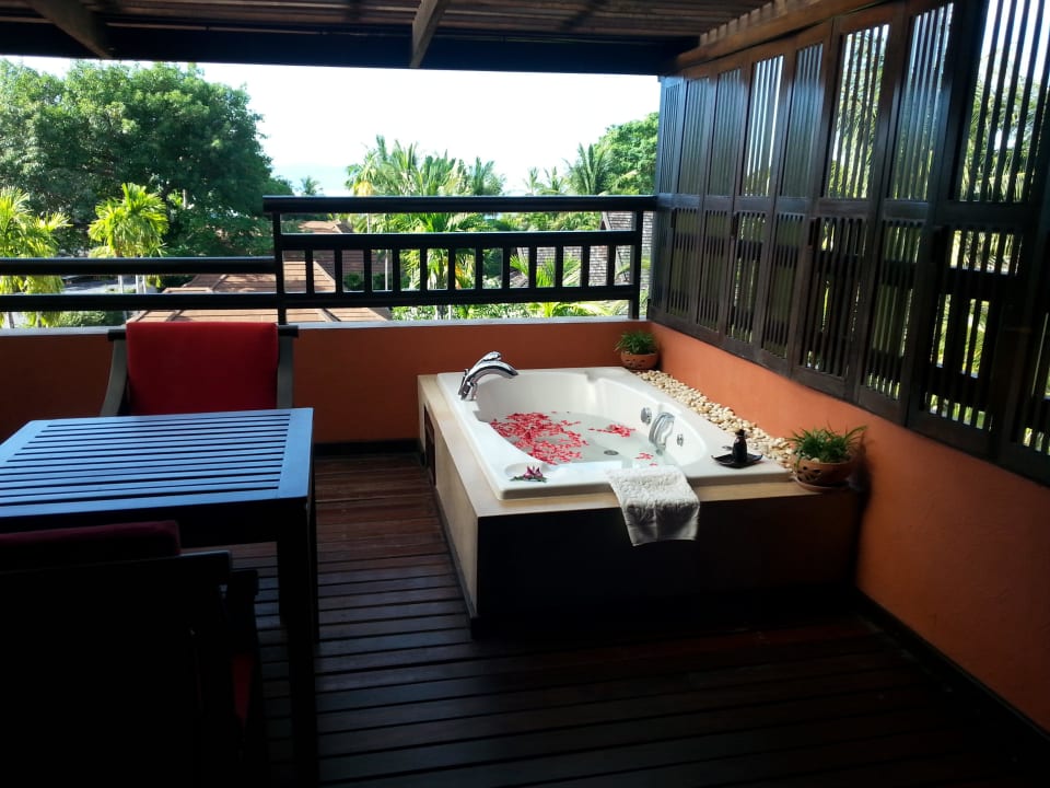 Unser Jacuzzi bei der Ankunft mit Blüten