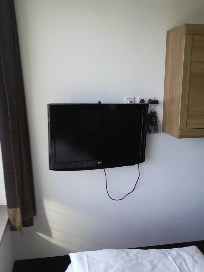 Flat-Screen TV an der Wand zum Fernsehen im Bett