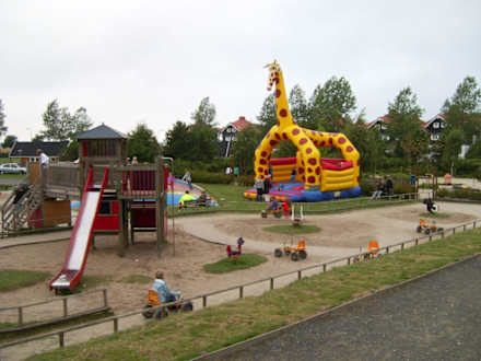Es gigt mehrere Spielplätze mit einer Unmenge an Geräten und Fahrzeugen.