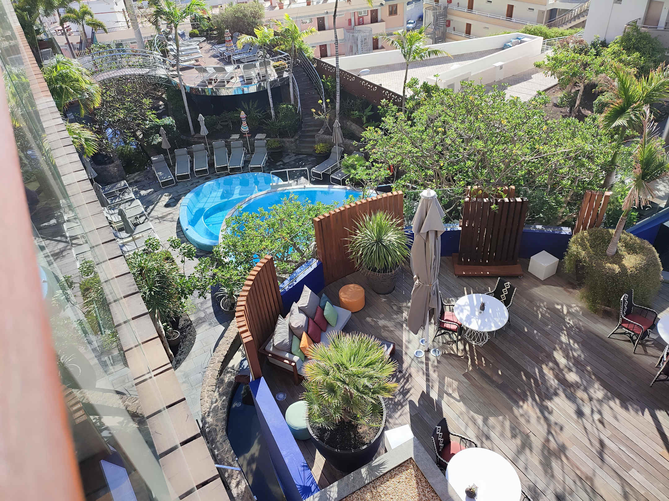 Blick auf Terrasse Poolbar