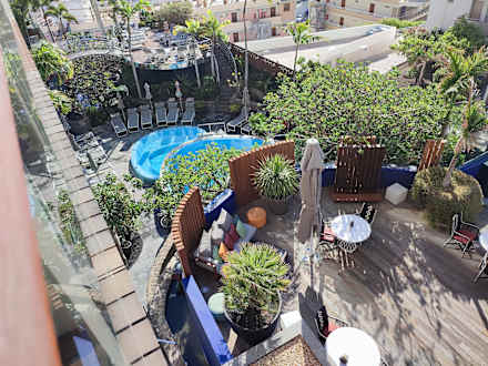 Blick auf Terrasse Poolbar