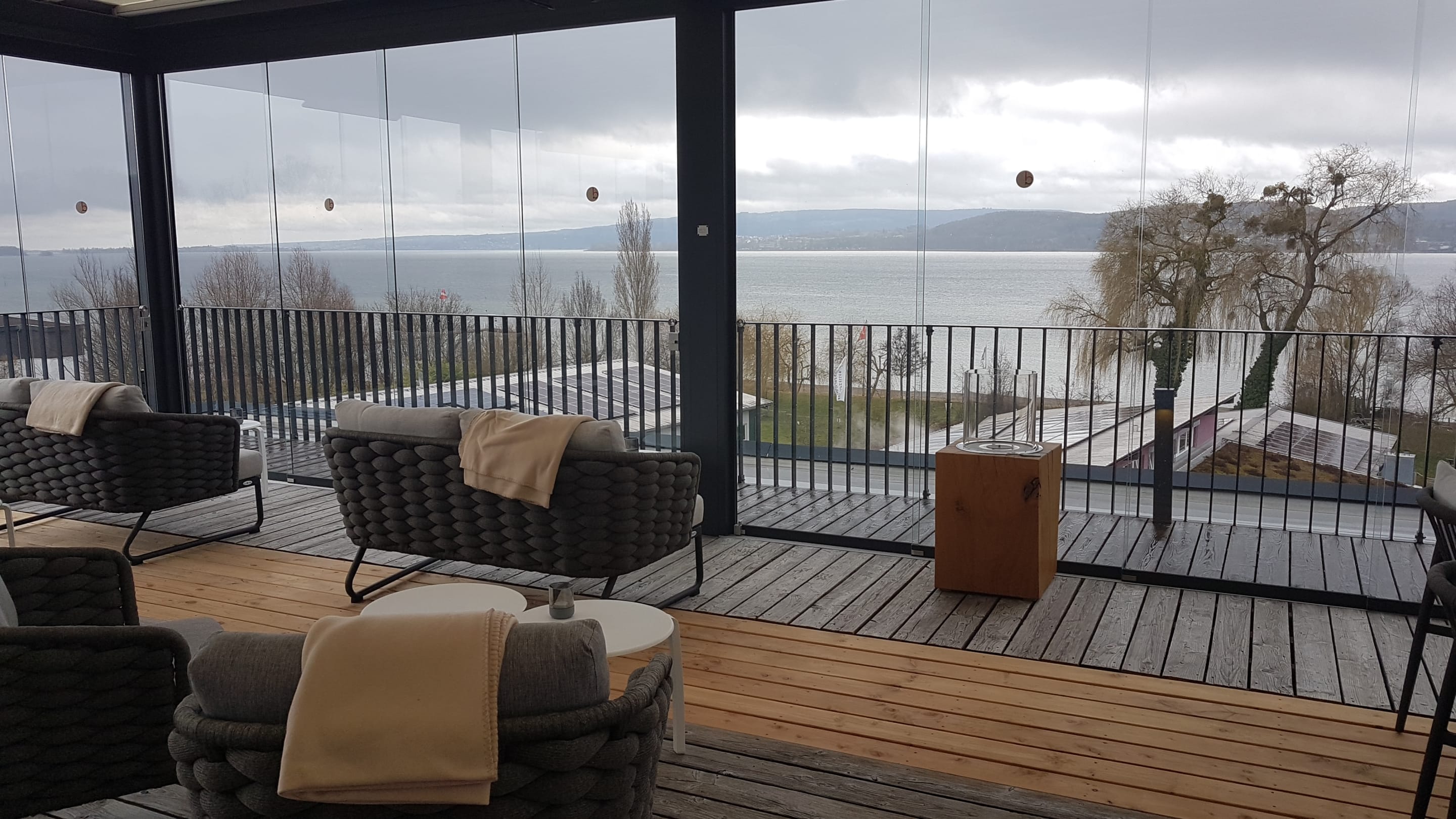Ausblick vom Wintergarten der Sky Lounge auf den Bodensee