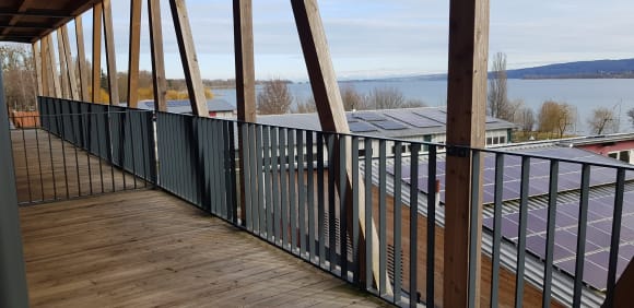 Ander Seite mit Blick auf die Schweiz und die Alpen. Hier gibt's Morgen sonne wunderschön!